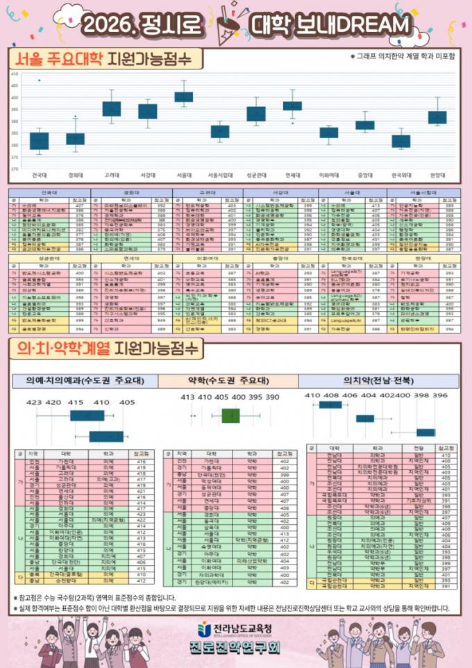 Àü³²´ë ¹× ¼­¿ï ÁÖ¿ä´ë Áö¿ø °¡´É Á¡¼ö Á¦½Ã, »ó´ãÁö¿øµµ °­È­