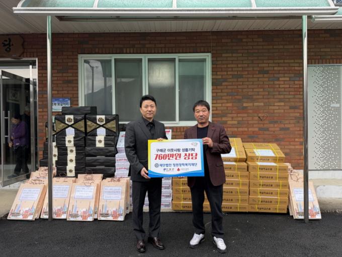 [È£³²µµ¹Î½Å¹® = ÀÓÀ±Áø ±âÀÚ] ±¸·Ê±ºÀº 12¿ù 19ÀÏ, (Àç)Á¤¿øÀåÇк¹ÁöÀç´Ü(ÀÌ»çÀå ±è¿ë¸¸)¿¡¼­ ÅäÁö¸é ½ÅÃ̸¶À» Áֹΰú °ü³» °¡Á¤À§Å¹¼¼´ë¸¦ À§ÇØ ½Ò(20kg), µÅÁö°í±â ¼¼Æ®, »ýÇÊǰ ¼¼Æ®, ¶ó¸é µî ÃÑ 760¸¸ ¿ø »ó´çÀÇ ¹°Ç°À» Àü´ÞÇß´Ù°í ¹àÇû´Ù.