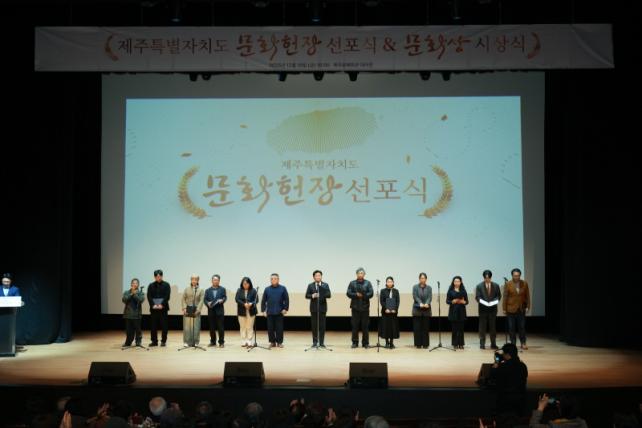 Á¦ÁÖµµ´Â 19ÀÏ ¿ÀÀü 10½Ã ¹®¿¹È¸°ü ´ë±ØÀå¿¡¼ ¡®¹®ÈÇåÀå ¼±Æ÷½Ä ¹× 2025³â ¹®È»ó ½Ã»ó½Ä¡¯À» °³ÃÖÇß´Ù. À̳¯ Çà»ç¿¡´Â ¿À¿µÈÆ µµÁö»ç¸¦ ºñ·ÔÇØ ¿ÃÇØ ¹®È»ó ¼ö»óÀÚ, ¹®È¿¹¼ú °ü°èÀÚ¿Í ¹®È¿¹¼úÀÎ µî 500¿© ¸íÀÌ Âü¼®Çß´Ù.