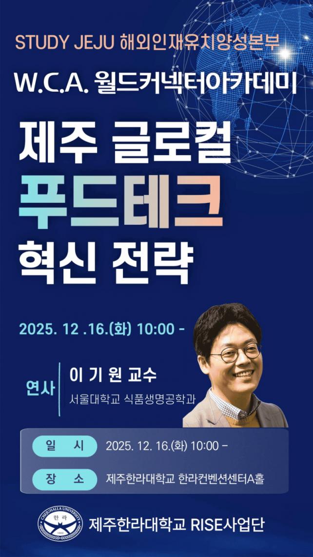 À̹ø Ư°Àº ¼¿ï´ëÇб³ ½Äǰ»ý¸í°øÇаú ÀÌ±â¿ø ±³¼ö¸¦ ÃÊÃ»ÇØ ¡¸Á¦ÁÖ ±Û·ÎÄà ǪµåÅ×Å© Çõ½Å Àü·«¡¹À» ÁÖÁ¦·Î ÁøÇàµÆ´Ù. ÀÌ±â¿ø ±³¼ö´Â °¿¬¿¡¼ K-Ǫµå¸¦ ´Ü¼øÇÑ ½Äǰ »ê¾÷À» ³Ñ¾î ±â¼ú¡¤¹®È¡¤ÄÜÅÙÃ÷°¡ °áÇÕµÈ ÇÑ·ù ¹®È ÄÜÅÙÃ÷·Î ±ÔÁ¤Çϰí, ±Û·Î¹ú ǪµåÅ×Å© »ê¾÷ÀÇ º¯È È帧 ¼Ó¿¡¼ Á¦ÁÖÀÇ ¿ªÇÒ°ú ¹ßÀü °¡´É¼ºÀ» Áß½ÉÀ¸·Î °ÀǸ¦ ÁøÇàÇß´Ù.