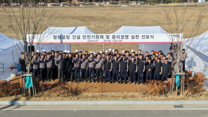±ÝȣŸÀ̾î´Â 22ÀÏ ÇÔÆò°øÀå °Ç¼³ ³ë»ç ÇÕµ¿ ¾ÈÀü±â¿øÁ¦¸¦ ÁøÇàÇß´Ù°í ¹àÇû´Ù. À̳¯ ¿ÀÈÄ ÇÔÆò½Å°øÀåÀÌ µé¾î¼³ ºû±×¸°»ê´Ü ºÎÁö¿¡¼ ÁøÇàµÈ ¾ÈÀü±â¿øÁ¦¿¡´Â ±ÝȣŸÀÌ¾î ´ëÇ¥ÀÌ»ç Á¤ÀÏÅà »çÀå, °æ¿µ±âȹº»ºÎ ÀÓ¿ÏÁÖ Àü¹«, ¾ÈÀü»ý»êÇõ½Åº»ºÎ Ȳȣ±æ Àü¹«, ÇÔÆò°øÀå°Ç¼³´Ü Á¤¿µ¸ð »ó¹«, ¼³ºñ±¸¸Å´ã´ç ±èµ¿È¯ »ó¹«, ³ëµ¿Á¶ÇÕ ¹× °Ç¼³¾÷ü °ü°èÀÚµéÀÌ Âü¿©Çß´Ù.
