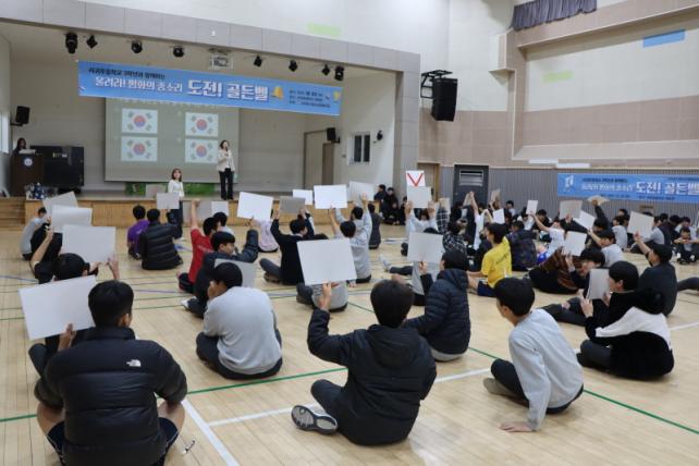 ¼­±ÍÆ÷½Ãû¼Ò³â¹®È­ÀÇÁý, ¼­±ÍÆ÷ÁßÇб³¿Í ÇÔ²² ¡®ÆòÈ­ÅëÀÏ °ñµçº§¡¯ ¼ºÈ²¸®¿¡ ¸¶¹«¸®