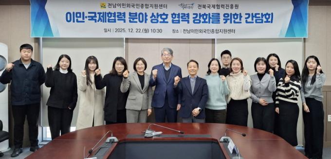 À̳¯ °£´ãȸ¿¡´Â ÀüºÏ±¹Á¦Çù·ÂÁøÈï¿ø ±è±â¼ö ¿øÀåÀ» ºñ·ÔÇØ ±âȹÇù·Â½Ç, ¿Ü±¹Àα³·ùÆÀ, ¿Ü±¹ÀαٷÎÀÚÁö¿ø¼¾ÅÍ °ü°èÀÚ µî 10¸íÀÌ Âü¼®Çß´Ù. Àü³²À̹οܱ¹ÀÎÁ¾ÇÕÁö¿ø¼¾ÅÍ¿¡¼´Â ±èÀϼö ¼¾ÅÍÀåÀ» ºñ·ÔÇØ ÃѰý¿î¿µÆÀ°ú ÅëÇÕÄݼ¾ÅÍÆÀ µî 7¸íÀÌ Âü¿©Çß´Ù.