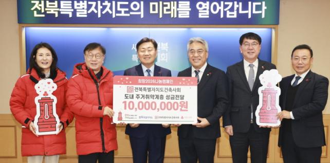 ÀüºÏÀÚÄ¡µµ´Â 24ÀÏ µµÃ» ȸÀǽǿ¡¼ ÀüºÏƯº°ÀÚÄ¡µµ °ÇÃà»çȸ(ȸÀå À̼º¿)°¡ »çȸº¹Áö°øµ¿¸ð±Ýȸ¿¡ ÀÌ¿ô»ç¶û ¼º±Ý 1,000¸¸ ¿øÀ» Àü´ÞÇß´Ù°í ¹àÇû´Ù. À̹ø ¼º±ÝÀº »çȸº¹Áö°øµ¿¸ð±Ýȸ¸¦ ÅëÇØ µµ³» Ãë¾à°èÃþÀÇ °Ü¿ïö ³¹æºñ¿Í »ý°è Áö¿ø, ¸ÂÃãÇü º¹Áö ÇÁ·Î±×·¥ µî¿¡ ¾²ÀÏ ¿¹Á¤ÀÌ´Ù.