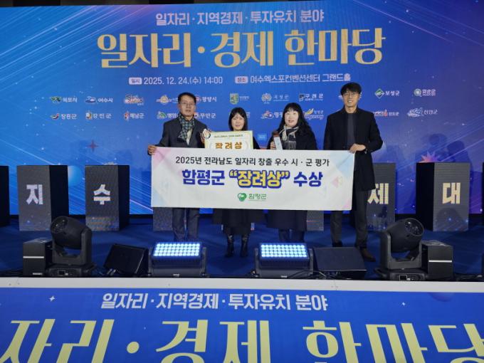ÇÔÆò±ºÀº Áö³ 24ÀÏ ¿©¼ö ¿¢½ºÆ÷ÄÁº¥¼Ç¼¾ÅÍ ±×·£µåȦ¿¡¼ ¿¸° ¡®Àü¶ó³²µµ ÀÏÀÚ¸®¡¤°æÁ¦ ÇѸ¶´ç Çà»ç¡¯¿¡¼ 2025³â ÀÏÀÚ¸® âÃâ ¿ì¼ö ½Ã±º Æò°¡ °á°ú ¡®Àå·Á»ó¡¯À» ¼ö»óÇß´Ù°í 25ÀÏ ¹àÇû´Ù. ÀÌ´Â, 2018³â ¼ö»ó ÀÌÈÄ 7³â ¸¸ÀÇ Äè°ÅÀÌ´Ù.