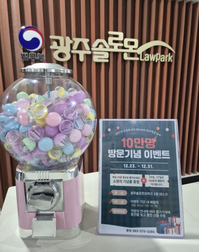 ±¤Áַּθó·ÎÆÄÅ©¿¡ µû¸£¸é ¿ÃÇØ 1¿ù 1ÀϺÎÅÍ 12¿ù 23ÀϱîÁö ±¤Áַּθó·ÎÆÄÅ©¸¦ ¹æ¹®ÇÑ ¹ýüÇè °ü¶÷°´ÀÌ 10¸¸ ¸íÀ» ³Ñ¾î À̸¦ ±â³äÇϸ鼭 ¿¬¸» ¹ýüÇè ±³À° Ȱ¼ºÈ­ ¹× ¹æ¹®°´ È®´ë¸¦ À§ÇØ Æ¯º°À̺¥Æ®¸¦ ½Ç½ÃÇϰí ÀÖ´Ù°í ÀüÇß´Ù.