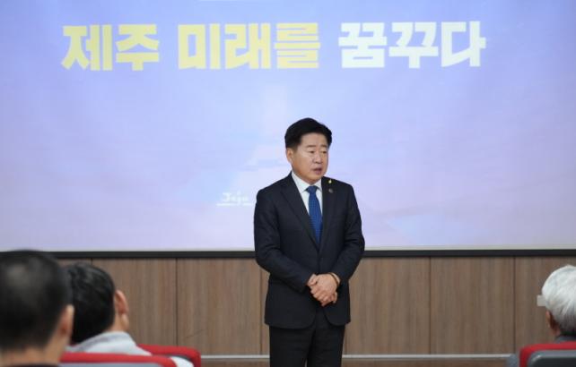 ¿À Áö»ç´Â ¡°Á¦ÁÖ´Â Àç»ý¿¡³ÊÁö, ¿ìÁÖ°úÇÐ ±â¼ú·Î ¸Ô°í»ç´Â ½Ã´ë·Î º¯ÈÇϰí ÀÖ´Ù¡±¸ç ¡°¼±Í»ê°ú°í°¡ °ú°Å 1Â÷»ê¾÷À» °ßÀÎÇßµíÀÌ, ÀÌÁ¦´Â ¿¡³ÊÁö ºÐ¾ß ÀÎÀç ¾ç¼ºÀ¸·Î Á¦ÁÖ ¹Ì·¡»ê¾÷À» ÁÖµµÇÏ°Ô µÉ °Í¡±À̶ó°í °Á¶Çß´Ù. ¶ÇÇÑ ¡°Á¦ÁÖ¸¦ ³Ñ¾î ¾Æ½Ã¾Æ, ³ª¾Æ°¡ ¿ìÁÖ±îÁö ¿©·¯ºÐÀÇ ¹«´ë°¡ µÅ¾ß ÇÑ´Ù¡±¸ç ÇлýµéÀ» °Ý·ÁÇß´Ù.