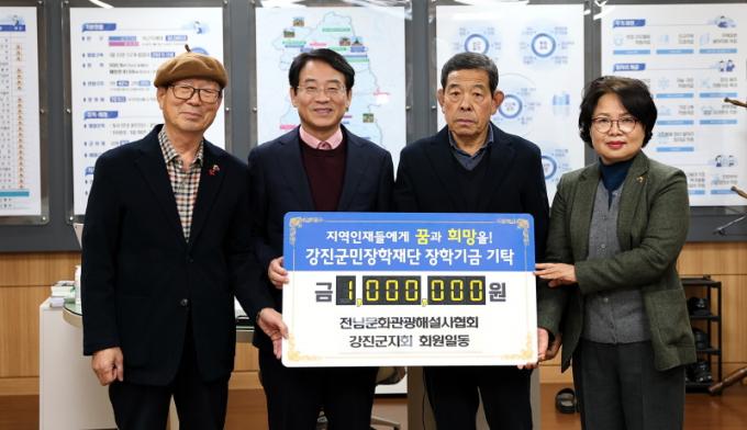 À±ÁØÈ£ Àü³²¹®È°ü±¤Çؼ³»çÇùȸ °Áø±ºÁöȸ ȸÀåÀº 1¹é¸¸ ¿øÀ» ±âŹ ÇßÀ¸¸ç, 2008³âºÎÅÍ ÃÑ 13ȸ, ´©Àû 1õ3¹é¸¸ ¿øÀ» ÀåÇбÝÀ¸·Î Àü´ÞÇØ ¿À¸ç °ÁøÀÇ ¹®È¡¤°ü±¤ ¹ßÀü°ú ÇÔ²² ¹Ì·¡¼¼´ë À°¼º¿¡µµ ÈûÀ» º¸Å°í ÀÖ´Ù. À±ÁØÈ£ ȸÀåÀº ¡°À̹ø ÀåÇбÝÀÌ ¾î·Á¿î ÇлýµéÀÌ Çо÷¿¡ Àü³äÇÒ ¼ö ÀÖ´Â µçµçÇÑ µðµõµ¹ÀÌ µÇ±æ ¹Ù¶õ´Ù¡±°í ÀüÇß´Ù.