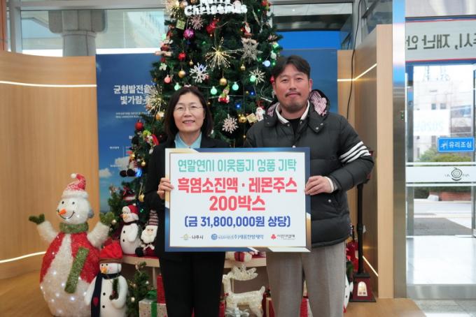 ³ªÁÖ½Ã(½ÃÀå À±º´ÅÂ)´Â ³ó¾÷ȸ»ç¹ýÀÎ ¢ß»õ·ÒÇѹæÁ¦¾à(´ëÇ¥ÀÌ»ç ¹Ú°æÇý)ÀÌ °ü³» »çȸº¹Áö½Ã¼³°ú Ãë¾à°èÃþ Áö¿øÀ» À§ÇØ Èæ¿°¼Ò Áø¾×°ú ·¹¸óÁÖ½º 200¼¼Æ®, 3180¸¸ ¿ø »ó´çÀÇ °Ç°­½ÄǰÀ» ±âŹÇß´Ù°í 29ÀÏ ¹àÇû´Ù.