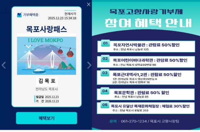 ¡®¸ñÆ÷»ç¶ûÆÐ½º¡¯´Â ¸ñÆ÷½Ã¿¡ 10¸¸ ¿ø ÀÌ»ó °íÇâ»ç¶û±âºÎ¸¦ Çϸé ÀÚµ¿À¸·Î ¹ß±ÞµÇ¸ç, °íÇâ»ç¶ûeÀ½ ´©¸®Áý(https://ilovegohyang.go.kr) ¸¶ÀÌÆäÀÌÁö¿¡¼ È®ÀÎÇÒ ¼ö ÀÖ´Ù.