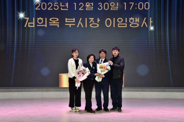 ±èÁ¦½Ã¸³ÇÕâ´ÜÀÇ °ø¿¬À¸·Î ½ÃÀÛÇÑ ÀÌÀÓ½ÄÀº ºÎ½ÃÀå Ȱµ¿ ¿µ»ó »ó¿µ°ú Á¤ ½ÃÀå ¹× ¼ ÀÇÀåÀÇ °ø·ÎÆÐ ¼ö¿©¸¦ ºñ·ÔÇØ µ¿·á °ø¹«¿øµé°ú »çȸ´Üü µî °¢°è°¢Ãþ¿¡¼ ÁغñÇÑ »óÆÐ¿Í ²É´Ù¹ß Àü´Þ½ÄÀ» °¡Á³´Ù.