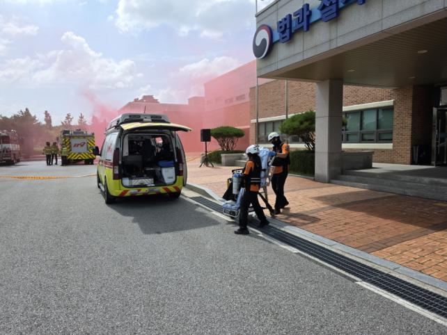 ƯÈ÷ À̹ø ¿¬½À¿¡¼´Â ±¹°¡ Áß¿ä ½Ã¼³ÀÎ ±³Á¤ ½Ã¼³À» ´ë»óÀ¸·Î ÇÑ µå·Ð(¹«Àαâ) Å×·¯ ¸ðÀÇÈÆ·ÃÀÌ ÁÖ¸ñ¹Þ¾Ò´Ù. °æÂû°ú ±ººÎ´ë, ¼Ò¹æ µî ÇÕµ¿ Àη 90¿© ¸í°ú Àåºñ 19´ë¸¦ ÅõÀÔÇØ ¹«Àαâ ŽÁöºÎÅÍ Ãʱ⠴ëÀÀ, Å»ÁÖÀÚ °Ë°Å±îÁö Àü °úÁ¤À» ½ÇÁ¦ »óȲó·³ ¿Ïº®È÷ ¼ÒÈÇß´Ù. ÀÌ´Â µå·Ð ±â¼úÀ» Ȱ¿ëÇÑ »õ·Î¿î º¹ÇÕ À§Çù¿¡ ´ëÀÀÇÏ´Â ¼±µµÀû »ç·Ê·Î Æò°¡¹ÞÀ¸¸ç Áö¿ª ¾Èº¸ ¿ª·®À» ÇÑ ´Ü°è µµ¾à½ÃÄ×´Ù.