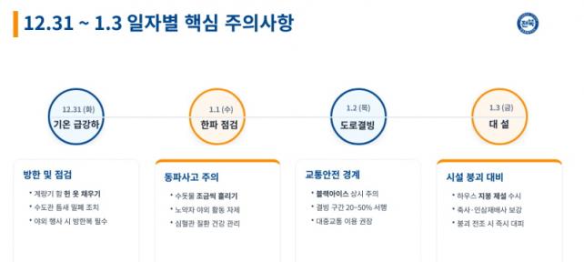 ÇÑÆÄ Ãë¾à°èÃþÀ» À§ÇÑ º¸È£ Á¶Ä¡µµ °ÈµÈ´Ù. ÀüºÏÀÚÄ¡µµ´Â µ¶°Å³ëÀÎ 11¸¸ 1õ¿© ¸í, Àå¾ÖÀÎ 12¸¸ 8õ¿© ¸í µî º¸È£´ë»óÀÚ¸¦ ´ë»óÀ¸·Î »ýȰÁö¿ø»ç¸¦ ÅëÇØ ±â»óƯº¸ ¹ßÈ¿ ½Ã ÁýÁß ¾ÈºÎ È®ÀÎÀ» ½Ç½ÃÇϰí ÀÖÀ¸¸ç, ¿Â¿±â±â Á¡°Ë°ú ÇÑÆÄ½°ÅÍ ³¹æ »óÅ Á¡°Ëµµ ¿Ï·áÇÑ »óÅ´Ù. ÁÖ°Å¿ë ºñ´ÒÇϿ콺 8°³¼Ò¿¡ ´ëÇØ¼µµ ¾ÈÀü¼º Á¡°ËÀ» ¸¶Ä¡°í ±ä±Þ ´ëÀÀü°è¸¦ ¸¶·ÃÇß´Ù.
