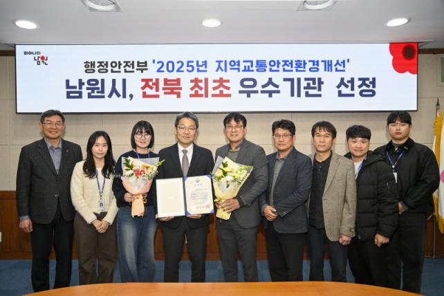 [È£³²µµ¹Î½Å¹® = ÀÓÀ±Áø ±âÀÚ] ³²¿ø½Ã(½ÃÀå ÃÖ°æ½Ä)°¡ ÇàÁ¤¾ÈÀüºÎ ÁÖ°ü ¡®2025³â Áö¿ª±³Åë¾ÈÀüȯ°æ°³¼±¡¯ Æò°¡¿¡¼­ Àü±¹ ¿ì¼ö ÁöÀÚü·Î ¼±Á¤µÇ¾î ÇàÁ¤¾ÈÀüºÎ Àå°ü ǥâÀ» ¼ö»óÇß´Ù.