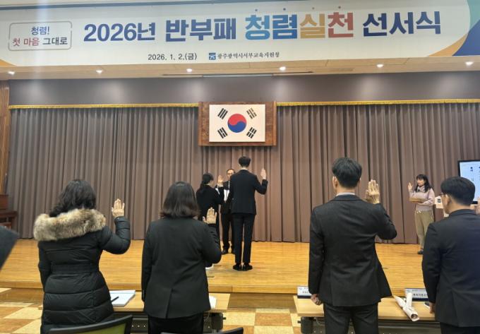 ±¤ÁÖµ¿ºÎ±³À°Áö¿øÃ» À̸í¼÷ ±³À°ÀåÀº ¡°Ã»·ÅÀº ±³À° ÇàÁ¤ÀÇ ½Å·Ú¸¦ ¿Ï¼ºÇÏ´Â °¡Àå °ß°íÇÑ ±â¹ÝÀÌ´Ù¡±¸ç ¡°Åõ¸íÇÑ °øÁ÷ ±â°­À» È®¸³ÇØ Çлý°ú Çкθð, ±¤ÁֽùΠ¸ðµÎ°¡ ¸¸Á·ÇÒ ¼ö ÀÖ´Â ±³À° ¼­ºñ½º¸¦ Á¦°øÇϰڴ١±°í ¸»Çß´Ù. ±¤ÁÖ¼­ºÎ±³À°Áö¿øÃ» À̼ºÃ¶ ±³À°ÀåÀº ¡°Ã»·ÅÀº °øÁ÷ÀÚ°¡ °®Ãç¾ß ÇÒ ±âº»ÀÌÀÚ Á¶Á÷ ½Å·ÚÀÇ Ãâ¹ßÁ¡ÀÌ´Ù¡±¸ç ¡°¾ÕÀ¸·Îµµ Åõ¸íÇÏ°í °øÁ¤ÇÑ Ã¥ÀÓ ÇàÁ¤À» ½ÇÃµÇØ ½Ã¹Îµé¿¡°Ô ¹ÏÀ½À» Áִ û·ÅÇÑ ±³À° ȯ°æÀ» Á¶¼ºÇϰڴ١±°í ÀüÇß´Ù.