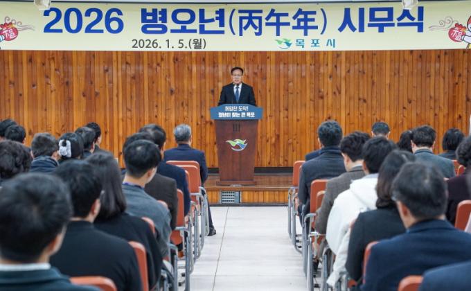 À̳¯ ½Ã¹«½Ä¿¡¼ Á¶¼®ÈÆ ¸ñÆ÷½ÃÀå ±ÇÇÑ´ëÇàÀº Á÷¿øµé°ú »õÇØ Àλ縦 ³ª´©¸ç, 2026³â ¸ñÆ÷ ¹ßÀüÀ» ÇâÇÑ °ÇÑ ÀÇÁö¸¦ ¹àÇû´Ù.