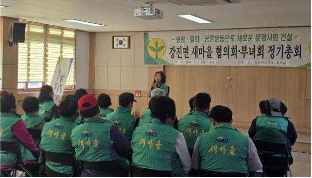 [È£³²µµ¹Î½Å¹® = ÀÓÀ±Áø ±âÀÚ] °­Áø¸é »õ¸¶À»ÁöµµÀÚȸ(ȸÀå ±èº´¾È)¿Í »õ¸¶À»ºÎ³àȸ(ȸÀå ±è¹Ì¾Ö)°¡ Áö³­ 6ÀÏ °­Áø¸é»ç¹«¼Ò ȸÀǽǿ¡¼­ ½Å³â ÃÑȸ¸¦ °³ÃÖÇß´Ù.