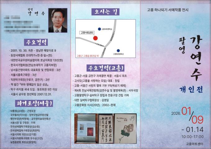 [È£³²µµ¹Î½Å¹® = ÀÓÀ±Áø ±âÀÚ] °íÈﱺ(±º¼ö °ø¿µ¹Î)Àº ¿À´Â 1¿ù 9ÀϺÎÅÍ 14ÀϱîÁö °íÈï¾ÆÆ®¼¾ÅÍ¿¡¼­ ¡®°íÈï ÇϳªµÇ±â ¼­¿¹ ÀÛǰ Àü½Ãȸ¡¯¸¦ °³ÃÖÇÑ´Ù°í ¹àÇû´Ù.