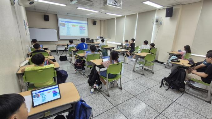 âÀÇÀ¶ÇÕÄÚµù±³½ÇÀº AI¿Í ¸ÞŸ¹ö½º ±â¹ÝÀÇ Ã¼ÇèÇü ±³À°À¸·Î ±¸¼ºµÆ´Ù. ÇлýµéÀº 3D °¡»ó°ø°£¿¡¼ ÄÚµù°ú ÇÁ·Î±×·¡¹ÖÀ» ÇнÀÇÒ ¼ö ÀÖ´Â ±³À°¿ë ¸ÞŸ¹ö½º Ç÷§Æû ¡®ÄÚ½ºÆäÀ̽ýº(CoSpaces)¡¯¸¦ Ȱ¿ëÇØ °¡»óµµ½Ã¸¦ ¼³°èÇÏ°í ±¸ÇöÇϴ Ȱµ¿¿¡ Âü¿©Çß´Ù.
