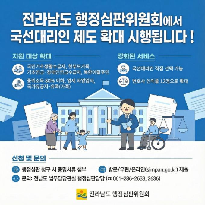 ±¹¼±´ë¸®ÀÎ ½ÅûÀº ÇàÁ¤½ÉÆÇ û±¸ ½Ã Áö¿ø ´ë»ó ¿©ºÎ¸¦ È®ÀÎÇÒ ¼ö ÀÖ´Â Áõ¸í¼·ù¸¦ ÷ºÎÇØ Àü³²µµÇàÁ¤½ÉÆÇÀ§¿øÈ¸¿¡ ¹æ¹®Çϰųª ¿ìÆí ¶Ç´Â ¿Â¶óÀÎ(https://simpan.go.kr/)À¸·Î ÇÏ¸é µÈ´Ù. ÀÌÈÄ µµÇàÁ¤½ÉÆÇÀ§¿øÈ¸¿¡¼ ¼±ÀÓ ¿©ºÎ¸¦ °áÁ¤ÇØ ±¹¼±´ë¸®ÀÎÀ» ÁöÁ¤¡¤ÅëÁöÇϸç, ±¹¼±´ë¸®ÀÎÀº û±¸ÀÎÀ» ´ë½ÅÇØ û±¸¼¡¤º¸Ã漸顤Áõ°Å¼·ù ÀÛ¼º¡¤Á¦Ãâ µî ÇàÁ¤½ÉÆÇ ¾÷¹«¸¦ ´ë¸® ¼öÇàÇÑ´Ù.