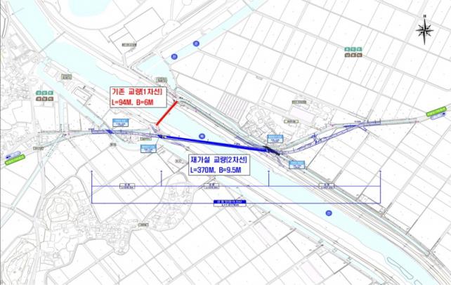 À̹ø »ç¾÷ ¹Ý¿µÀ¸·Î ³Æ÷±³´Â Æø 9.5m, ¿¬Àå 370m ±Ô¸ðÀÇ 2Â÷·Î ±³·®À¸·Î Àç°¡¼³µÇ¸ç, ±³·® ³ôÀÌ »óÇâ°ú ÇÔ²² »ó¡¤ÇÏ·ù Á¦¹æ º¸°, Á¢¼Óµµ·Î °³¼±ÀÌ º´ÇàµÉ ¿¹Á¤ÀÌ´Ù. ÃÑ»ç¾÷ºñ´Â ¾à 225¾ï ¿øÀ¸·Î, ±³·® 150¾ï ¿ø°ú Á¢¼Óµµ·Î 75¾ï ¿øÀÌ ÅõÀԵȴÙ. ¼³°è¿ë¿ªÀº ¿À´Â 12¿ù ¿Ï·á¸¦ ¸ñÇ¥·Î ÃßÁøµÇ¸ç, 2027³â 1¿ù Âø°øÇØ 2029³â ¸» ÁذøÀ» °èȹÇϰí ÀÖ´Ù.