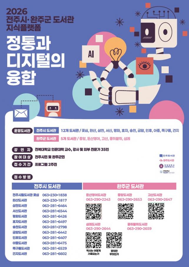 ÀüÁֽô Áö³­ 8ÀϺÎÅÍ ¿À´Â 2¿ù 5ÀϱîÁö 12°³ ½Ã¸³µµ¼­°ü¿¡¼­ ÀüºÏ´ëÇб³¿Í ¿¬°èÇÑ ¡®ÀüÁֽà µµ¼­°ü Áö½ÄÇ÷§Æû: Á¤Åë°ú µðÁöÅÐÀÇ À¶ÇÕ¡¯ ÇÁ·Î±×·¥À» ¿î¿µÇÑ´Ù°í 12ÀÏ ¹àÇû´Ù.