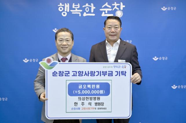¼øÃ¢À¾ ¹é»ê¸® Ãâ½ÅÀÎ ÇÑÁÖ¼® º´¿øÀåÀº Áö³ 2005³âºÎÅÍ °íÇâÀÇ ¾î·Á¿î ÀÌ¿ô°ú »çȸº¹Áö½Ã¼³À» À§ÇØ ²ÙÁØÈ÷ ±âºÎȰµ¿À» À̾î¿À°í ÀÖÀ¸¸ç, ¼øÃ¢±º¿¡ 3³â ¿¬¼Ó°íÇâ»ç¶û±âºÎ±Ý 500¸¸¿øÀ» Àü´ÞÇØ Áö¿ª»çȸÀÇ ±Í°¨ÀÌ µÇ°í ÀÖ´Ù.