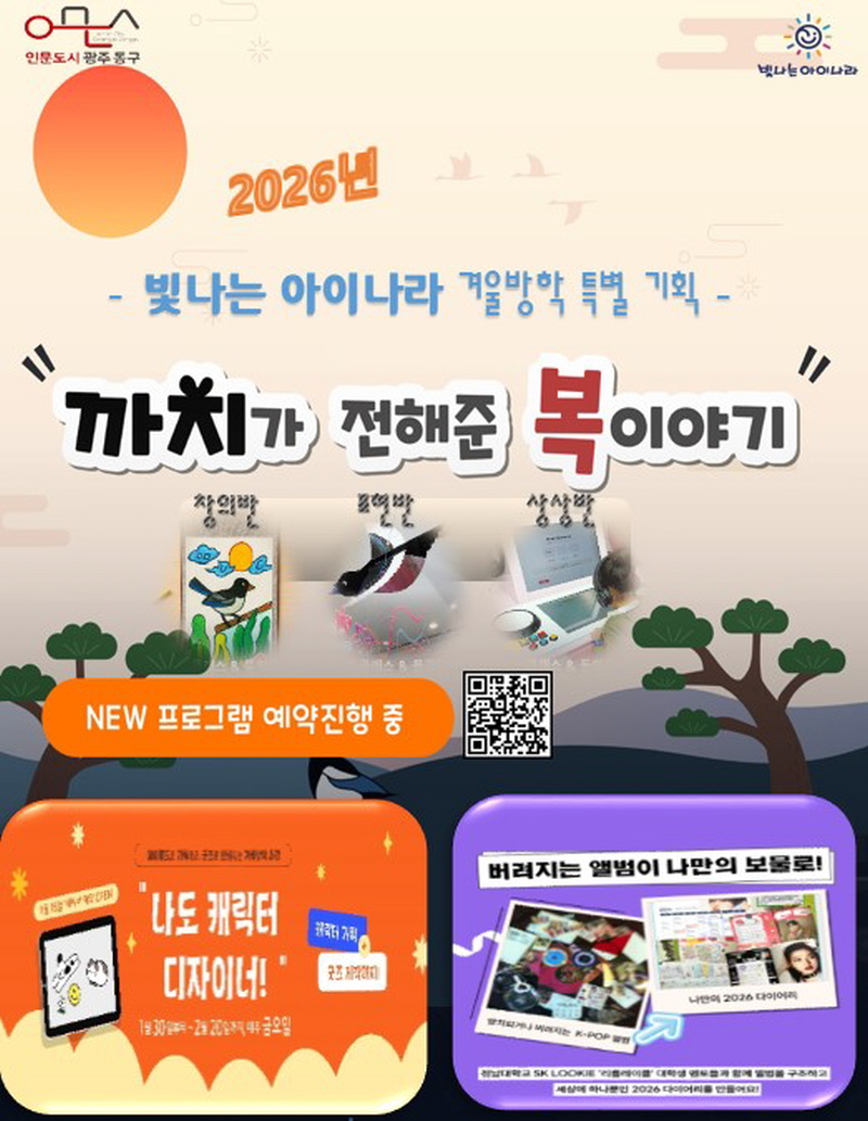 À̹ø ÇÁ·Î±×·¥Àº »õÇØ¸¦ ¸Â¾Æ ÀüÅë ¼³ÈÀÎ ¡®ÀºÇý °±´Â ±îÄ¡ ¼³È¡¯¸¦ ¸ðƼºê·Î, ±îÄ¡°¡ º¹À» ÀüÇØÁÖ´Â À̾߱⸦ ÁÖÁ¦·Î ÇÑ ´Ù¾çÇÑ ¿¹¼ú¡¤¹Ìµð¾î À¶ÇÕ Ã¼ÇèÀ¸·Î ±¸¼ºµÆ´Ù. ¾î¸°À̵éÀº µðÁöÅÐ µå·ÎÀ×, ºûÀÇ °¶·¯¸®, ¹°°¨¡¤°ø¹æ üÇè, ÀΰøÁö´É(AI) ±â¹Ý µ¿È °øÀÛ¼Ò µî ´Ùä·Î¿î Ȱµ¿À» ÅëÇØ ÀÚ¿¬½º·´°Ô »ó»ó·Â°ú âÀÇ·ÂÀ» Ű¿ï ¼ö ÀÖ´Ù.