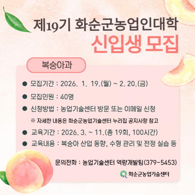 ȼø±º³ó¾÷ÀδëÇÐÀº Áö¿ª Æ¯È ÀÛ¸ñ Áß½ÉÀÇ Ã¼°èÀûÀÎ ±³À°À» ÅëÇØ Àü¹® ³ó¾÷ °æ¿µÀÎÀ» À°¼ºÇÏ´Â µ¥ ÃÊÁ¡À» µÎ°í ÀÖÀ¸¸ç, ¿ÃÇØ´Â º¹¼þ¾Æ »ê¾÷ÀÇ °æÀï·Â °È¸¦ ¸ñÇ¥·Î º¹¼þ¾Æ ´ÜÀÏ Çаú¸¦ °³¼³ÇÏ¿© ÃÑ 40¸íÀÇ ±³À°»ýÀ» ¸ðÁýÇÒ ¿¹Á¤ÀÌ´Ù.