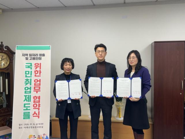 ³²¿ø½Ã´Â 1¿ù 16ÀÏ(±Ý) ¿ÀÈÄ 2½Ã, ¹Ì·¡»ê¾÷³óÁ¤±¹Àå½Ç¿¡¼ °í¿ë³ëµ¿ºÎ ³²¿ø°í¿ë¼¾ÅÍ, ³²¿ø½ÃÀÏÀÚ¸®Áö¿ø¼¾ÅÍ, ³²¿ø¿©¼º»õ·ÎÀÏÇϱ⼾ÅÍ µî 3°³ ±â°üÀÌ Âü¿©ÇÑ °¡¿îµ¥ 2026³â ±¹¹ÎÃë¾÷Áö¿øÁ¦µµ ¿¬°è¡¤Çù¾÷ü°è ±¸ÃàÀ» À§ÇÑ ¾÷¹«Çù¾àÀ» ü°áÇß´Ù.