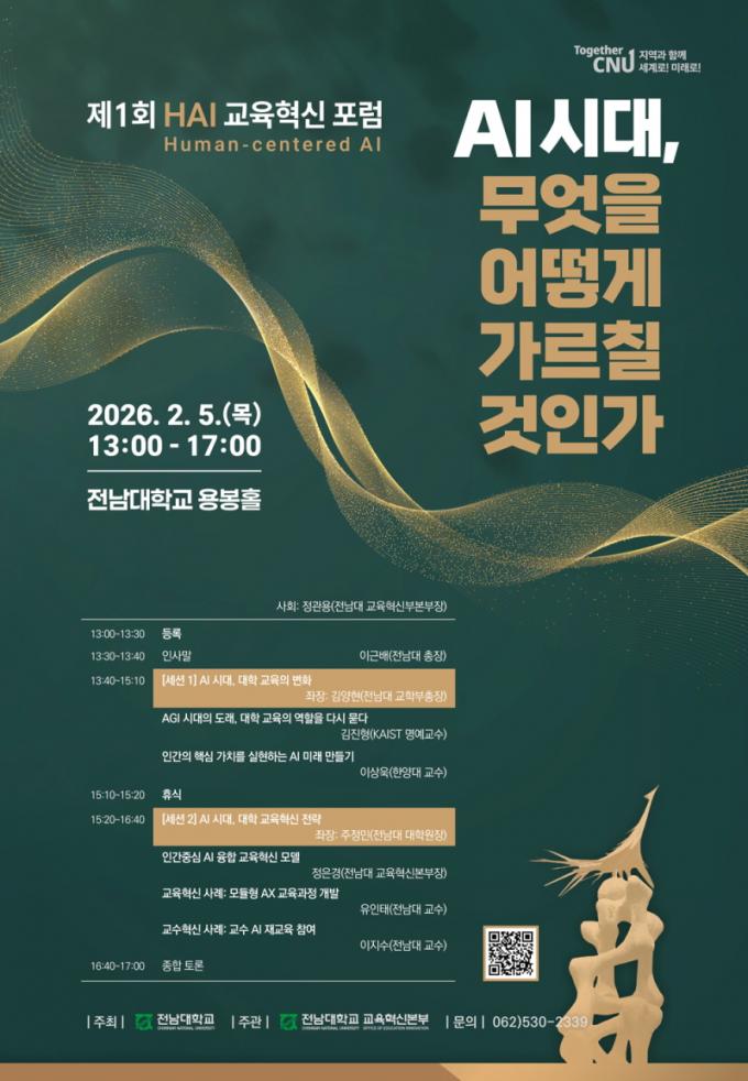 ¼¼¼Ç 2´Â ¡®AI ½Ã´ë, ´ëÇÐ ±³À°Çõ½Å Àü·«¡¯À» ÁÖÁ¦·Î ÁÖÁ¤¹Î ´ëÇпøÀåÀÇ ÁøÇàÀ¸·Î Àü³²´ëÀÇ ±¸Ã¼ÀûÀÎ Çõ½Å ¼º°ú¸¦ ¹ßÇ¥ÇÑ´Ù. ¡ãÁ¤Àº°æ Àü³²´ë ±³À°Çõ½Åº»ºÎÀåÀÇ ¡®Àΰ£Á᫐ AI À¶ÇÕ ±³À°Çõ½Å ¸ðµ¨¡¯ ¹ßÇ¥¸¦ ½ÃÀÛÀ¸·Î ¡ãÀ¯ÀÎÅ ±³¼öÀÇ ¡®±³À°Çõ½Å »ç·Ê: ¸ðµâÇü AX ±³À°°úÁ¤ °³¹ß¡¯ ¡ãÀÌÁö¼ö ±³¼öÀÇ ¡®±³¼öÇõ½Å »ç·Ê: ±³¼ö AI Àç±³À° Âü¿©¡¯ µî ´ëÇÐ ÇöÀå¿¡ Áï½Ã Àû¿ë °¡´ÉÇÑ ½ÇõÀû »ç·ÊµéÀÌ ¼Ò°³µÉ ¿¹Á¤ÀÌ´Ù.