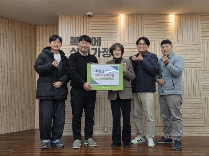 ¹Ú¿ëÁÖ ³ªÁÖÇõ½ÅÀå·Î±³È¸ ´ãÀÓ¸ñ»ç´Â ¡°¼ºµµµé°ú ÇÔ²² ¸¶·ÃÇÑ ¼ÒÁßÇÑ ±Ý¾×À» µµ¿òÀÌ ÇÊ¿äÇÑ ÀÌ¿ôµé¿¡°Ô »ç¿ëÇÒ ¼ö ÀÖ¾î ±â»Ú´Ù¡± ¶ó¸ç, ¡°¸¶À½À» ¸ðÀº µû¶æÇÑ ¼Õ±æÀÌ ¾ÆÀ̵鿡°Ô ´õºÒ¾î »ç´Â ÇູÇÑ ¼¼»óÀ» ´À³¥ ¼ö ÀÖ´Â ÀÇ¹Ì ÀÖ´Â ¼±¹°·Î Àü´ÞµÇ±â¸¦ ±â´ëÇÑ´Ù¡± ¶ó°í ÀüÇß´Ù.