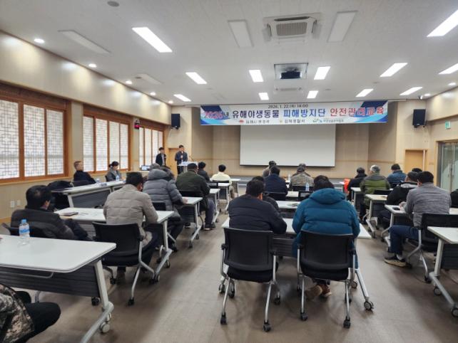 À̹ø ±³À°Àº 2026³â ÇÇÇØ¹æÁö´ÜÀ¸·Î ¼±¹ßµÈ ±èÁ¦½Ã °ÅÁÖ ¼ö·ÆÀÎ 33¸íÀÌ Âü¼®ÇßÀ¸¸ç, ±èÁ¦°æÂû¼¿Í ¾ß»ý»ý¹°°ü¸®Çùȸ ÀüºÏÁöºÎ°¡ Çù·ÂÇØ Ãѱâ Ãë±Þ ¹× »ç°í ¿¹¹æ ±³À°µµ ÇÔ²² ÁøÇàµÆ´Ù.