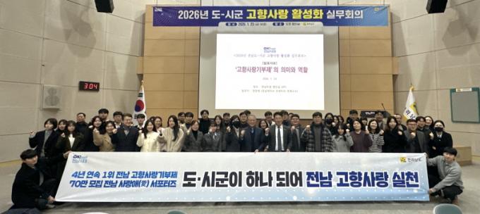 °°æ¹® Àü³²µµ °íÇâ»ç¶û°úÀåÀº ¡°°íÇâ»ç¶û±âºÎÁ¦¿Í Àü³² »ç¶û¾Ö ¼Æ÷ÅÍÁî´Â °¢°¢ Áß¿äÇÑ Á¤Ã¥ ¼ö´ÜÀÎ µ¿½Ã¿¡ µµ¿Í ½Ã±ºÀÌ ÇÔ²² ¿î¿µÇÒ ¶§ È¿°ú°¡ ±Ø´ëȵǴ Á¦µµ¡±¶ó¸ç ¡°°íÇâ»ç¶û±âºÎÁ¦ 4³â ¿¬¼Ó Àü±¹ 1À§, Àü³² »ç¶û¾Ö ¼Æ÷ÅÍÁî 70¸¸ ¸í ¸ðÁý ¸ñÇ¥ ´Þ¼ºÀ» À§ÇØ ½Ã±º°ú ÈûÀ» ¸ð¾Æ ±âºÎ Âü¿© È®´ë¿Í Áö¿ª Ȱ·Â Á¦°í·Î À̾îÁöµµ·Ï Çϰڴ١±°í ¸»Çß´Ù.