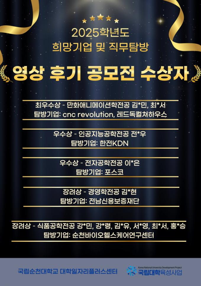 ¼ö»óÀÛÀº ±¹¸³¼øÃµ´ëÇб³ °ø½Ä ȨÆäÀÌÁö¸¦ ÅëÇØ °ø°³µÇ¸ç, ÇâÈÄ ÀçÇлýµéÀÇ Áø·Î Ž»öÀ» µ½´Â ±³À° ¹× È«º¸ ÀÚ·á·Î Àû±Ø Ȱ¿ëµÉ ¿¹Á¤ÀÌ´Ù.