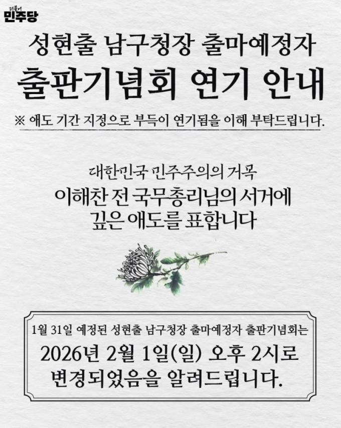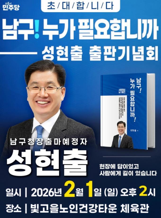 ¼ºÇöÃâ ¼ö¼®ºÎȸÀå ÃøÀº ¿À´Â 1¿ù 31ÀÏ ³²±¸ ºû°íÀ»³ëÀΰǰŸ¿î ¿¡¼ °³ÃÖ ¿¹Á¤À̾ú´ø Àú¼ ¡¶³²±¸, ´©°¡ ÇÊ¿äÇմϱÀÇ ÃâÆÇ±â³äȸ¸¦ 2¿ù 1ÀÏ(ÀÏ)·Î ¹Ì·é´Ù°í ¹àÇû´Ù.