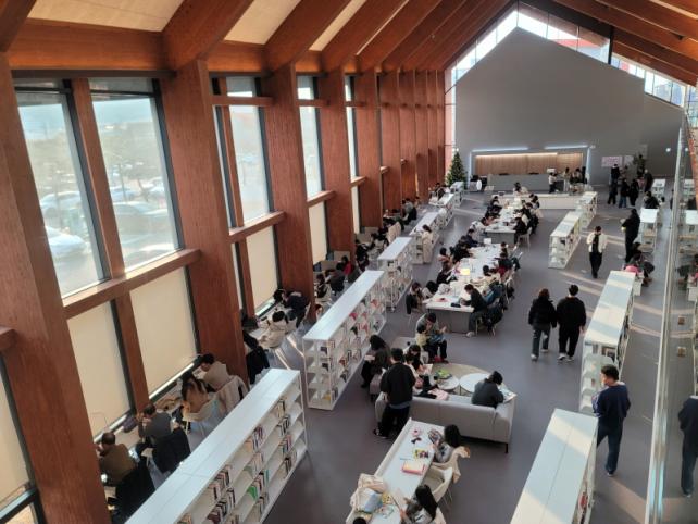 °íâȲÀ±¼®µµ¼°üÀº ¸ðµÎ¿¡°Ô ¿¸°µµ¼°üÀ» Ãß±¸Çϰí ÀÖ´Ù. ¿¶÷½ÇºÎÅÍ µû·Î ¾ø´Ù. 2Ãþ¿¡¼ 1ÃþÀ¸·Î ³»·Á°¡´Â °è´Ü½Ä ¿¶÷¼®°ú ¼°í¿Í º¹µµ °÷°÷¿¡ Ã¥ ÀÐÀ» °ø°£À» ¸¸µé¾ú´Ù. ƯÈ÷ À¯¾Æ ¼°¡¿¡ ½Å°æÀ» ¸¹ÀÌ ½è´Ù. ÇÑ À̿밴Àº ¡°´Ù¸¥ µµ¼°ü¿¡ °¡¸é Á¶¿ëÇÑ ºÐÀ§±â ¼Ó¿¡ ´«Ä¡¸¦ º¸´À¶ó ¾ÆÀÌ¿Í ÇÔ²² ¿À±â Èûµé¾ú´Ù¡±¸ç ¡°¿©±â´Â ÆíÇÏ°Ô ½¬¶ó°í ¸¸µé¾î ³õÀº °ø°£ °°¾Æ ¸¶À½ÀÌ ÆíÇÏ´Ù¡±°í ¸»Çß´Ù. µµ¼°ü ÇÑÄÒ¿¡´Â Ä¿ÇǸ¦ ¸¶½Ã¸ç ´ã¼Ò¸¦ ³ª´ Ä«Æäµµ ¸¶·ÃµÆ´Ù.