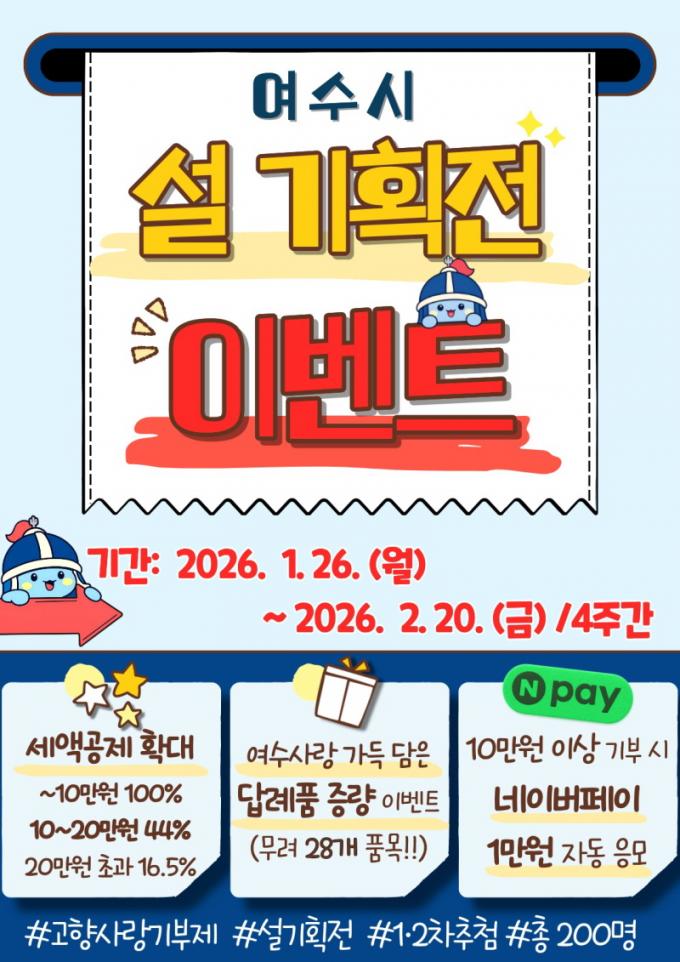 ¿©¼ö½Ã °ü°èÀÚ´Â ¡°¼³ ¸íÀýÀ» ¸Â¾Æ °æÇ° Ãß÷°ú ´Ù¾çÇÑ ´ä·Êǰ Áõ·® À̺¥Æ®¸¦ Á¤¼º²¯ ÁغñÇß´Ù¡±¸ç, ¡°2¿ù 20ÀϱîÁö À̾îÁö´Â À̺¥Æ®¸¦ ÅëÇØ ´õ ¸¹Àº ºÐµéÀÌ °íÇâ »ç¶ûÀ» ½ÇõÇÏ°í ¾ËÂù ÇýÅõµ ¹Þ¾Æ °¡´Â Áñ°Å¿î ¸íÀýÀÌ µÇ½Ã±æ ¹Ù¶õ´Ù¡±°í ÀüÇß´Ù.