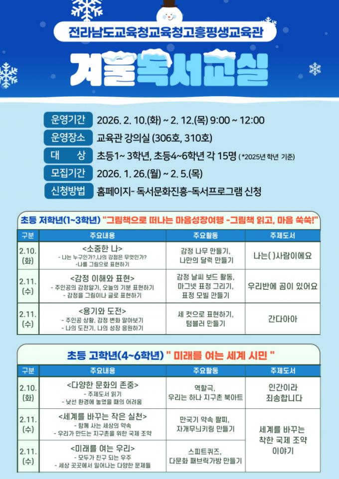 À̹ø °Ü¿ï µ¶¼±³½ÇÀº 2¿ù 10ÀÏ(È)ºÎÅÍ 2¿ù 12ÀÏ(¸ñ)±îÁö 3Àϰ£ ÃʵîÇлý 30¸íÀ» ´ë»óÀ¸·Î ¿î¿µÇϸç Ã¥ Àб⸦ ¹ÙÅÁÀ¸·Î »ý°¢À» ³ª´©´Â µ¶¼Ã¼Çè Ȱµ¿À¸·Î ±¸¼ºµÈ´Ù.