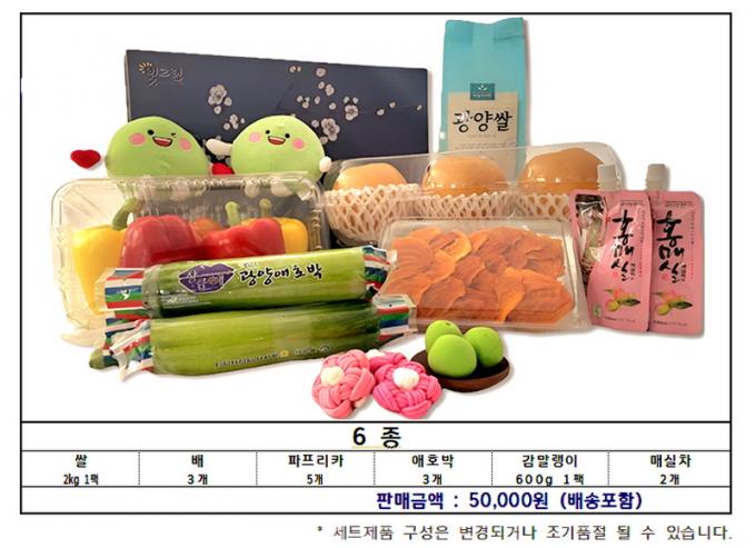 À̹ø ¼±¹°¼¼Æ®´Â ±¤¾ç³óÇù°ú Çù¾÷ÇØ ÃßÁøµÆÀ¸¸ç, ¡ã½Ò ¡ã¹è ¡ãÆÄÇÁ¸®Ä« ¡ã¾ÖÈ£¹Ú ¡ã°¨¸»·©ÀÌ ¡ã¸Å½Çû µî ±¤¾ç¿¡¼ »ý»êµÈ ¿ì¼ö ³óƯ»ê¹° 6°³ ǰ¸ñÀ¸·Î ±¸¼ºµÆ´Ù. °¡°ÝÀº ¹è¼Ûºñ¸¦ Æ÷ÇÔÇØ ¼¼Æ®´ç 5¸¸ ¿øÀ¸·Î, ÃÑ 500¼¼Æ® ÇÑÁ¤ ÆÇ¸ÅµÆ´Ù.