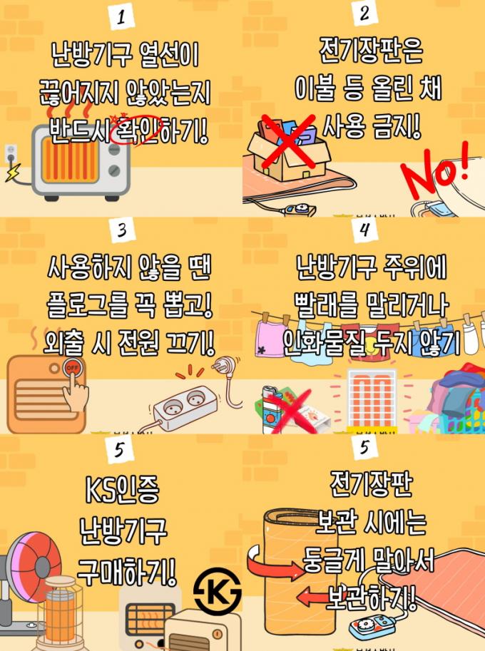 °Ü¿ïö¿¡´Â Àü±â¸ÅÆ®, Àü±âÈ÷ÅÍ, ¿Âdz±â µî ³¹æ±â±¸ »ç¿ëÀÌ ´Ã¾î³ª¸é¼ °ú¿, Àü¼± ¼Õ»ó, Àå½Ã°£ »ç¿ë µîÀ¸·Î ÀÎÇÑ Àü±âÈÀç ¹ß»ý À§ÇèÀÌ ³ô¾Æ °¢º°ÇÑ ÁÖÀǰ¡ ÇÊ¿äÇÏ´Ù. ƯÈ÷ Àü±â¸ÅÆ®ÀÇ Á¢Èû »ç¿ëÀ̳ª ÀÌºÒ µîÀ¸·Î µ¤Àº »óÅ¿¡¼ Àå½Ã°£ »ç¿ëÇÏ´Â °æ¿ì ÈÀç·Î À̾îÁú °¡´É¼ºÀÌ Å©´Ù.