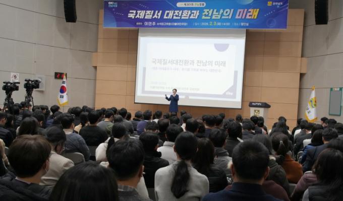 À̳¯ Æ÷·³¿¡¼± °ø¹«¿ø°ú °ü°èÀÚ µî 400¿© ¸íÀÌ Âü¼®ÇØ ±¹Á¦Áú¼ ´ëÀüȯ ½Ã±â¿¡ Àü³²ÀÌ ³ª¾Æ°¡¾ß ÇÒ ¹æÇâ¿¡ ´ëÇØ °í¹ÎÇÏ´Â ½Ã°£À» º¸³Â´Ù.