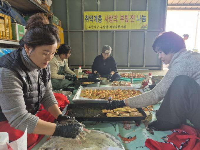 ȸ¿øµéÀº ºÎħ°³¿¡ »ç¿ëÇÒ Ã¤¼Ò¿Í »ý¼±, °í±â µîÀ» Á÷Á¢ ¼ÕÁúÇØ µ¿ÅÂÀü°ú µ¿±×¶û¶¯, »êÀû µî ´Ù¾çÇÑ ÀüÀ» Á¤¼º²¯ ¸¶·ÃÇßÀ¸¸ç, ¿Ï¼ºµÈ À½½ÄÀº ¿î³²¸é 30°³ ¸¶À»ÀÇ Ãë¾à°èÃþ¿¡ Àü´ÞµÆ´Ù.