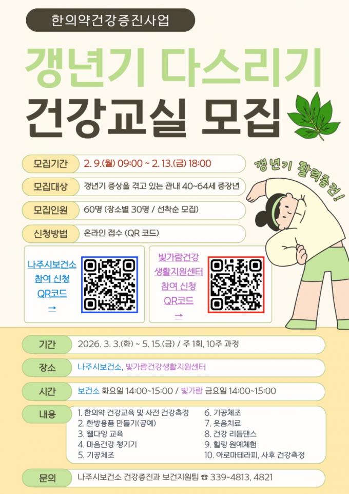 [È£³²µµ¹Î½Å¹® = ÀÓÀ±Áø ±âÀÚ] ³ªÁֽú¸°Ç¼Ò°¡ °»³â±â Áõ»óÀ» °Þ°í ÀÖ´Â ÁßÀå³âÀÇ °Ç°­ ÁõÁøÀ» À§ÇØ ¡®2026³â »ó¹Ý±â °»³â±â ´Ù½º¸®±â °Ç°­±³½Ç¡¯ Âü¿©ÀÚ¸¦ ¸ðÁýÇÑ´Ù.