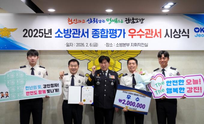 Á¤¿ëÀÎ °Áø¼Ò¹æ¼ÀåÀº ¡°À̹ø ¼ö»óÀº ÇöÀå¿¡¼ ¹¬¹¬È÷ ÀÓ¹«¸¦ ¼öÇàÇÑ Á÷¿øµé°ú ±º¹Î ¿©·¯ºÐÀÇ ÇùÁ¶°¡ ÇÔ²² ¸¸µç °ªÁø °á°ú¡±¶ó¸ç, ¡°2026³â¿¡µµ ±º¹Î ¾ÈÀüÀ» ÃÖ¿ì¼±À¸·Î ÇÑ ÇöÀå ´ëÀÀ·Â °È¿Í ¿¹¹æ Á᫐ ¼Ò¹æ ÇàÁ¤À» Áö¼ÓÀûÀ¸·Î ÃßÁøÇØ, ´õ¿í ½Å·Ú¹Þ´Â °Áø¼Ò¹æ¼¸¦ ¸¸µé¾î °¡°Ú´Ù¡±°í ¸»Çß´Ù.