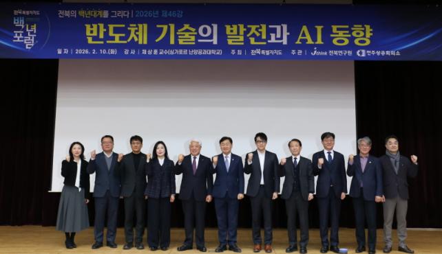 [È£³²µµ¹Î½Å¹® = ÀÓÀ±Áø ±âÀÚ] ÀüºÏ¿¬±¸¿ø(¿øÀå ÃÖ¹é·Ä)Àº 10ÀÏ ¿ÀÀü 8½Ã, ÀüºÏƯº°ÀÚÄ¡µµÃ» 4Ãþ ´ëȸÀǽǿ¡¼­ ½Ì°¡Æ÷¸£ ³­¾ç°ø°ú´ëÇб³ ä»óÈÆ ±³¼ö¸¦ ÃÊÃ»ÇØ ¡®¹ÝµµÃ¼ ±â¼úÀÇ ¹ßÀü°ú AI µ¿Ç⡯À» ÁÖÁ¦·Î ¡¸ÀüºÏ ¹é³âÆ÷·³¡¹À» °³ÃÖÇß´Ù. ä ±³¼ö´Â ¹ÝµµÃ¼ Àü¹®°¡·Î, 2026³â 1¿ù ¡®ÀÚ¶û½º·± ÀüºÏÀλó'À» ¼ö»óÇß´Ù.