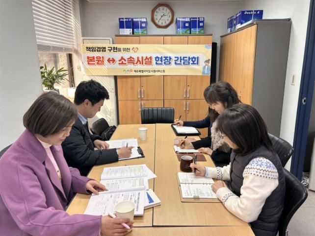 Á¦ÁÖÆ¯º°ÀÚÄ¡µµ»çȸ¼ºñ½º¿ø ¹®¿øÀÏ ¿øÀåÀº ¡°ÇöÀåÀÇ ÀǰßÀ» Á÷Á¢ µè°í, ½ÇÈ¿¼º ÀÖ´Â Áö¿ø°ú Á¦µµ °³¼±À¸·Î À̾îÁú ¼ö ÀÖµµ·Ï Çϰڴ١±¸ç ¡°¾ÕÀ¸·Îµµ ¼Ò¼Ó½Ã¼³°úÀÇ ¼ÒÅëÀ» °ÈÇØ µµ¹ÎÀÌ Ã¼°¨ÇÏ´Â »çȸ¼ºñ½º ǰÁú Çâ»ó¿¡ ÃÖ¼±À» ´ÙÇϰڴ١±°í ¹àÇû´Ù.