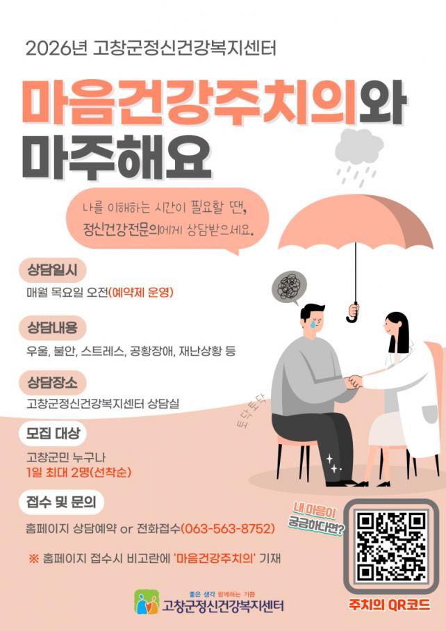 [È£³²µµ¹Î½Å¹® = ÀÓÀ±Áø ±âÀÚ] °íⱺ Á¤½Å°Ç°­º¹Áö¼¾ÅͰ¡ Áö¿ªÁÖ¹ÎÀÇ ¸¶À½ °Ç°­ ÁõÁøÀ» À§ÇØ 2026³â ¸¶À½°Ç°­ÁÖÄ¡ÀÇ »ç¾÷À» ¿î¿µÇϰí ÀÖ´Ù.