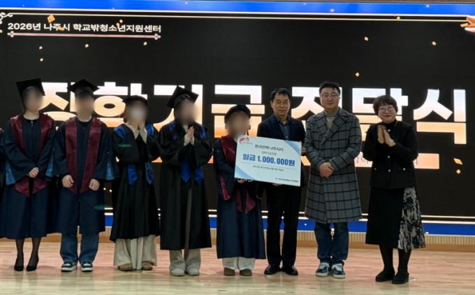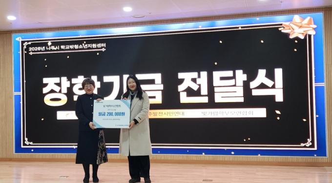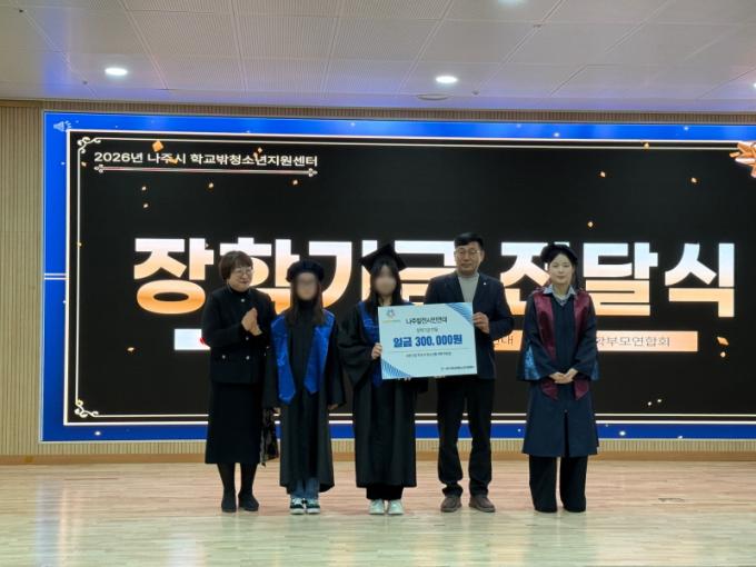 ÀÓÇö¼± ³ªÁÖ½ÃÇб³¹Ûû¼Ò³âÁö¿ø¼¾ÅÍ ¼¾ÅÍÀåÀº ¡°À̹ø ÀåÇÐ±Ý Àü´ÞÀº Á¹¾÷À» ¸ÂÀÌÇÑ Ã»¼Ò³âµé¿¡°Ô Å« °Ý·Á°¡ µÇ¾ú´Ù¡±¸ç ¡°Áö¿ª»çȸÀÇ Áö¼ÓÀûÀÎ °ü½É°ú ÈÄ¿øÀÌ ¾ÆÀ̵éÀÇ °Ç°ÇÑ ¼ºÀå°ú ÀÚ¸³¿¡ µçµçÇÑ ÈûÀÌ µÇ°í ÀÖ´Ù. µû¶æÇÑ ³ª´®À» ½ÇÃµÇØ ÁֽŠÈÄ¿ø ´Üü¿¡ Áø½ÉÀ¸·Î °¨»çµå¸°´Ù¡±°í ¸»Çß´Ù.