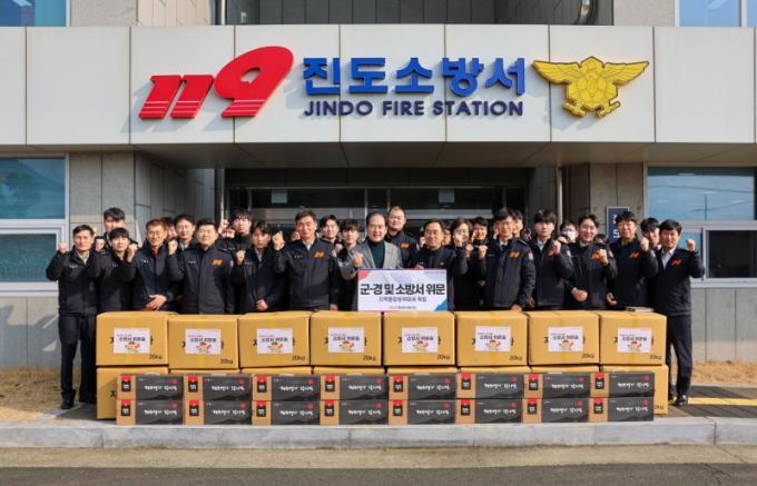 [È£³²µµ¹Î½Å¹® = ÀÓÀ±Áø ±âÀÚ] Áøµµ±º ÅëÇÕ¹æÀ§ÇùÀÇȸ(ÀÇÀå ±èÈñ¼ö)°¡ ¹ÎÁ· °íÀ¯ÀÇ ¸íÀýÀÎ ¼³À» ¸Â¾Æ ±ººÎ´ë¿Í ¼Ò¹æ¼¸¦ ¹æ¹®ÇØ, À§¹®Ç°À¸·Î ÁøµµÀÇ Æ¯»ê¹°À» Àü´ÞÇϸç À§¹®Çß´Ù.